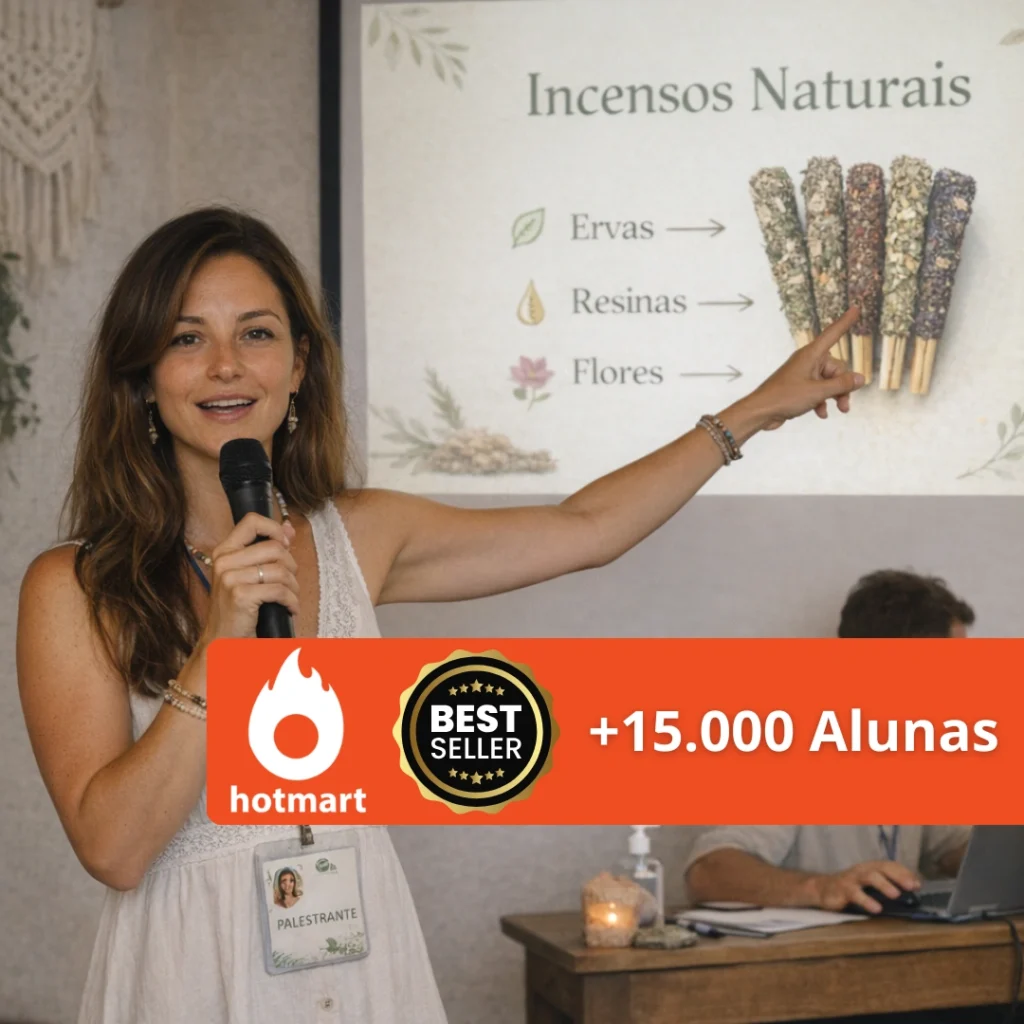 Hoje, Ana Barcellos é referência em incenso artesanal de vareta e ensina um método direto e acessível para que outras mulheres consigam, em poucos meses, o que levou muito tempo de tentativa e erro para aprender sozinha.